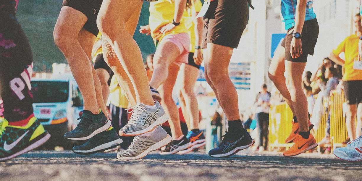 group of runners at the start line of a 5k race