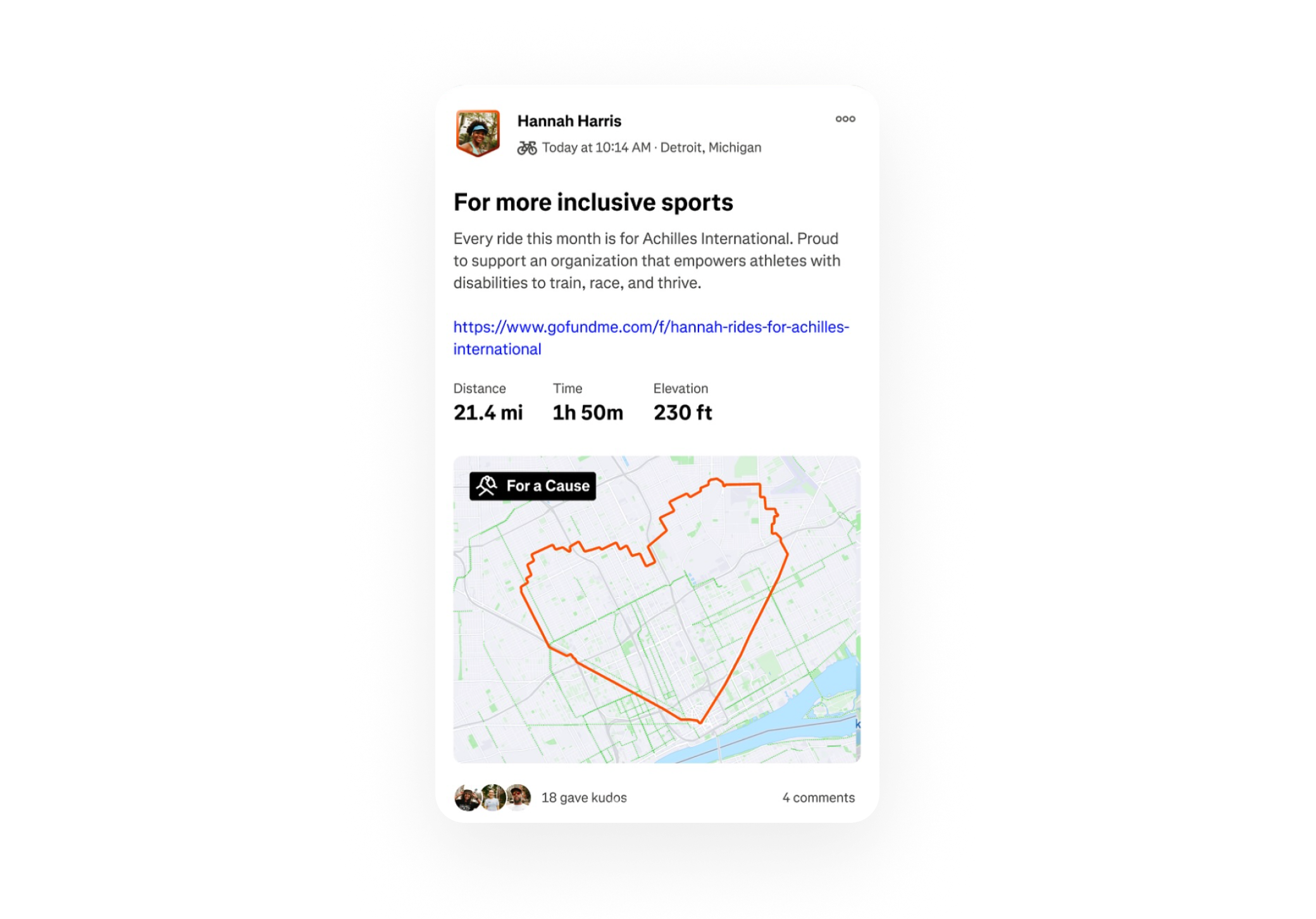 As a nonprofit that focuses on connecting individuals through athletics, Achilles International was an early adopter of Strava’s ‘For a Cause’ tag. The new tag allows individuals to connect activities tracked on Strava, a mobile app for tracking fitness activity, with GoFundMe charity fundraisers. This gives individuals a meaningful way to support causes they care about while turning activities they love into impact.