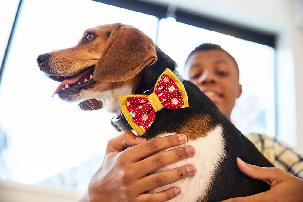 Sir Darius came up with an idea to help: He would make bow ties for the pups living in animal shelters. He figured that with dapper bow ties around their necks, dogs would appear more approachable, friendly, and cute — helping them get adopted quicker.