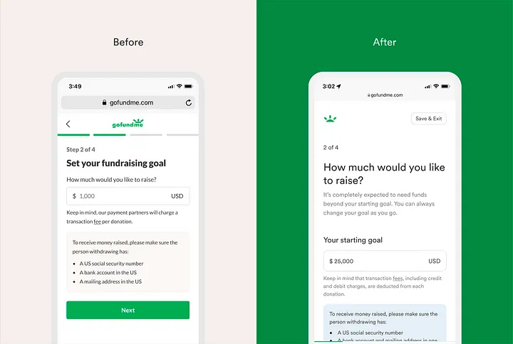 During the first week, we set goals, defined principles, and identified potential features through the lens of loss and grief. We discussed all elements of a funeral and memorial organizer’s journey from start to finish — from creating, publishing, and managing their fundraiser, to transferring funds to a bank account. Recognizing that getting started is often the toughest part of any task, we narrowed our focus to the fundraiser creation experience, our very first touchpoint with this group.