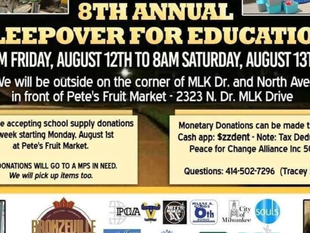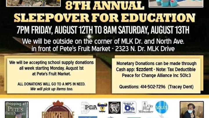 Hi my name is Tracey Dent, and I am the Excutive Director of Peace For Change Alliance Inc. (501c3), and we are hosting our 8th Annunal Sleepover For Education, August 12 and 13, 2022. We will be spending the night outside on the corner of MLK dr. and North Ave. in front of Petes Fruit Market in Milwaukee Wisconsin.