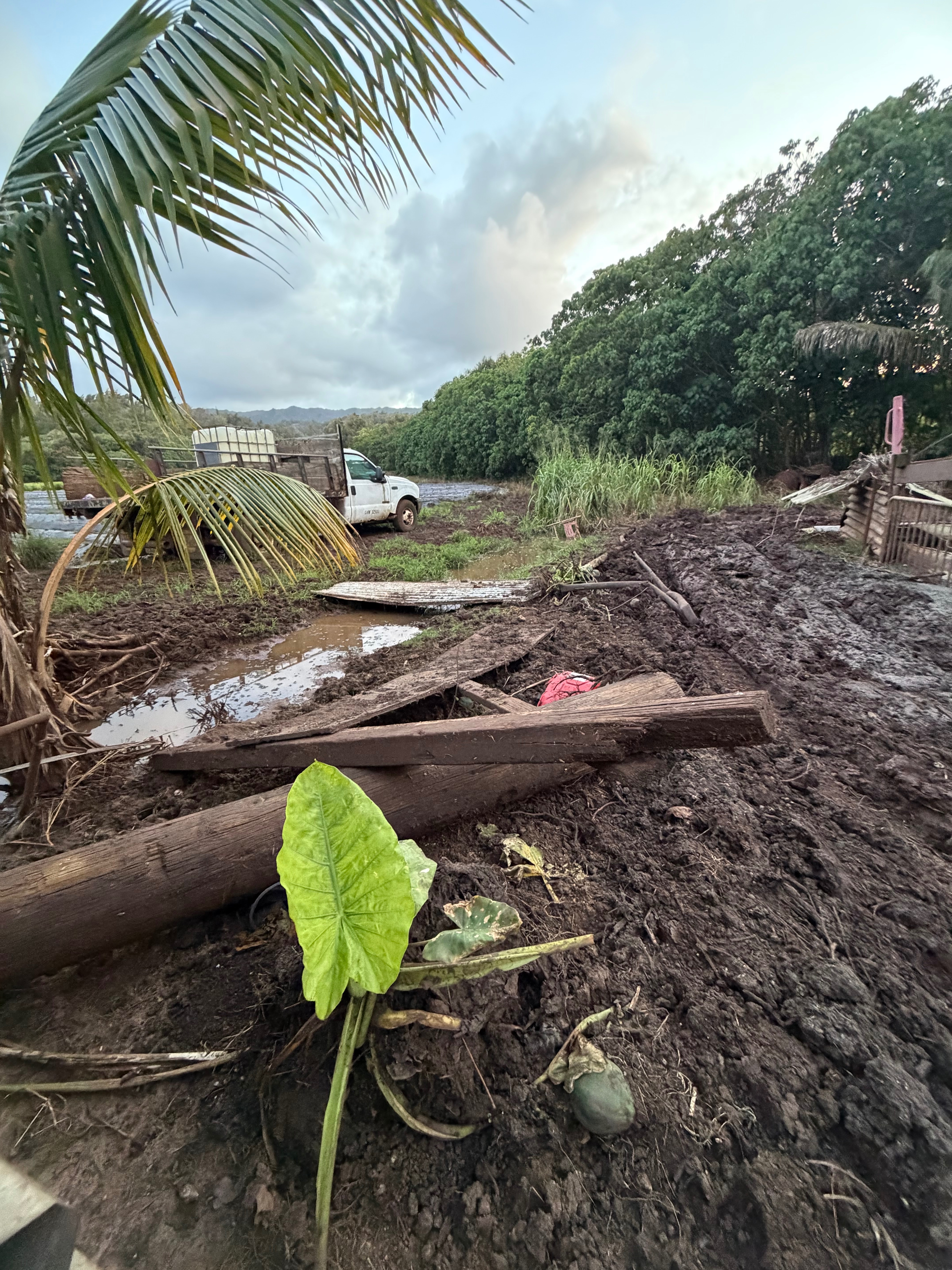 The Kona low storm devastated our home and farm in Laie, Hawai’i, leaving us with unimaginable loss. The damage was so severe that we had to relocate our dogs for their safety, and now our once-familiar home and farm are unrecognizable. Every day, we are working to clear out the debris and begin the long process of rebuilding, but the challenges feel overwhelming at times. Our family and the rescues we care for have lost everything in the flood, and the road ahead is daunting.
